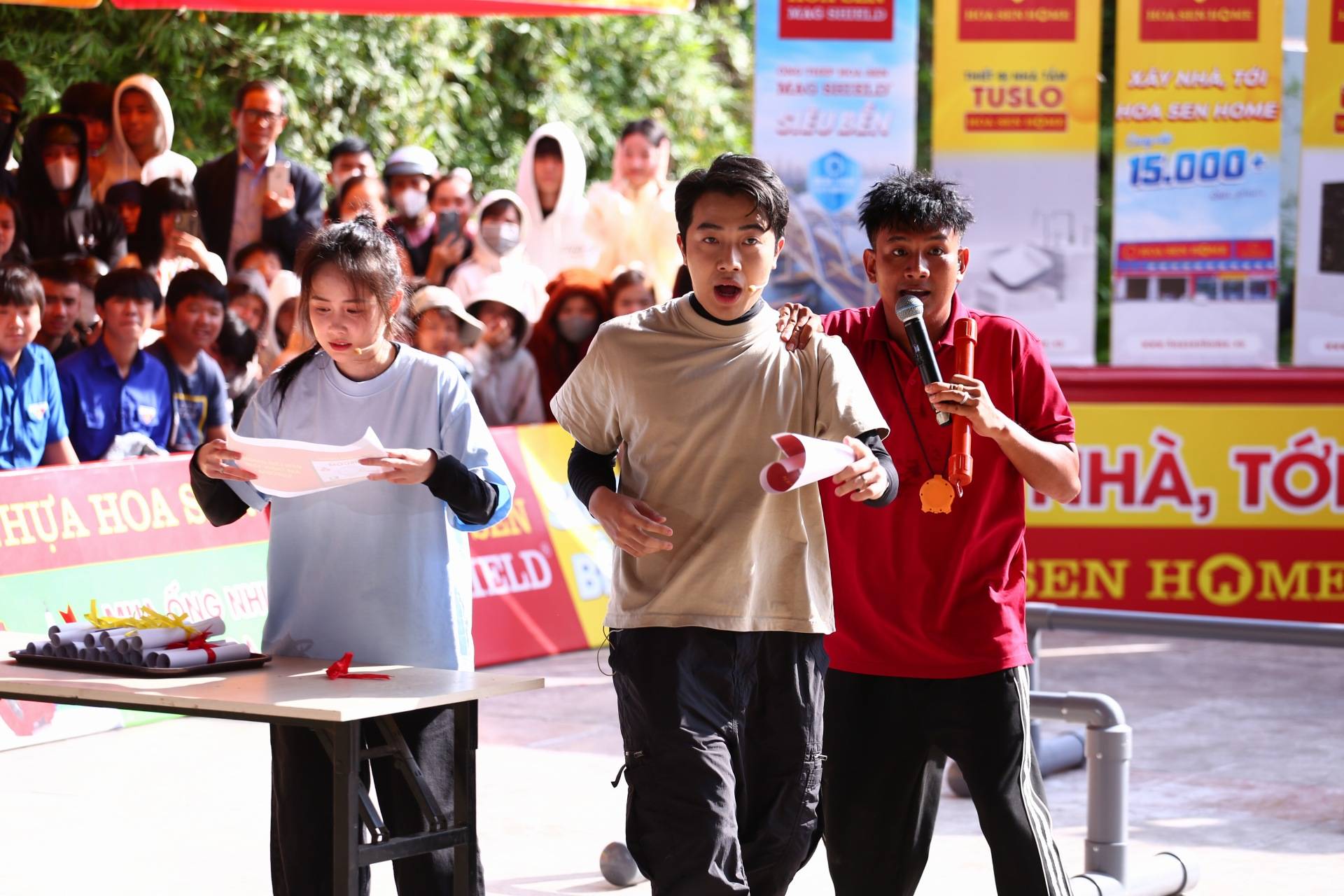 Trong các phần thi của chương trình, Khải Đăng và Thủy Tiên không ngại lăn xả, cùng nhau mang những phần quà ý nghĩa đến các em nhỏ.