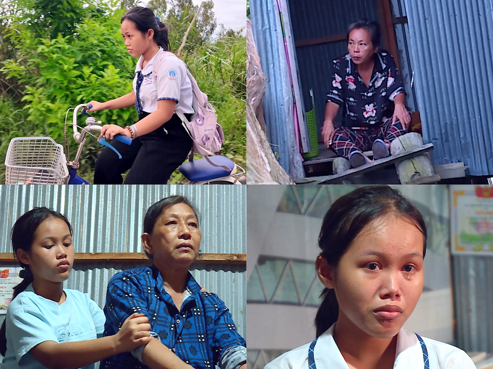 Gia đình em Mai hiện đang sinh sống trong căn nhà dựng tạm trên phần đất mượn, nằm sát mé sông và đã xuống cấp nghiêm trọng. Cuộc sống hằng ngày của ba người phụ thuộc hoàn toàn vào số tiền ít ỏi mà dì Trinh kiếm được. Những ngày sức khỏe yếu, không thể chạy xe, cả nhà chỉ có rau hái quanh nhà qua bữa, hôm nào may mắn mới được hàng xóm cho thêm ít cá, ít thịt.
