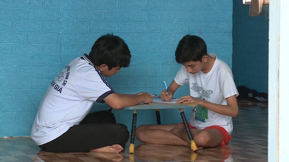 Anh hai Hào và em Hưng luôn kiên nhẫn dạy anh ba Hân học mỗi ngày.