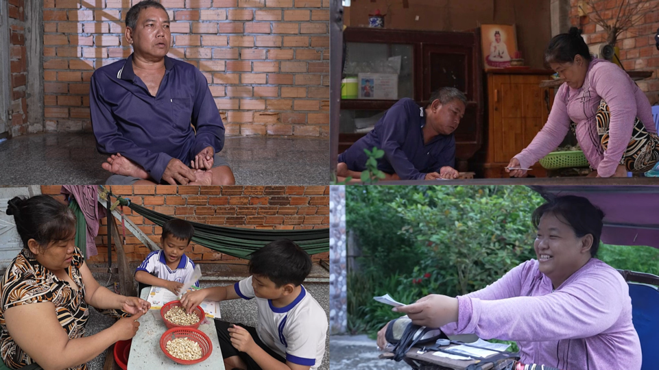 Địa phương đã hỗ trợ mỗi người một chiếc xe lắc điện để thuận tiện di chuyển. Tuy nhiên do sức khỏe yếu, mỗi ngày anh chị chỉ bán được khoảng 150 tờ vé số. Buổi tối, mẹ của Tiến còn nhận cạo hạt điều tại nhà để kiếm thêm thu nhập; cả gia đình cùng nhau làm được khoảng 1kg hạt điều mỗi ngày, được trả 8.000 đồng/kg.