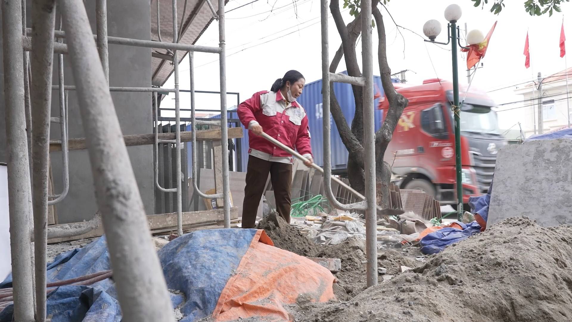 Dù công việc phụ hồ vất vả, chị Hằng vẫn luôn cố gắng chăm lo cho ba con và người chồng bệnh tật.
